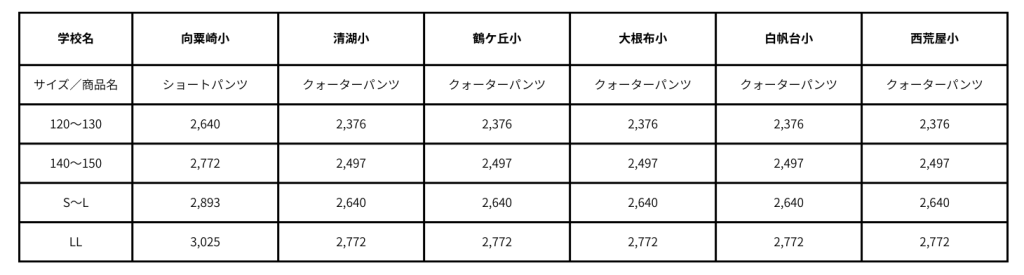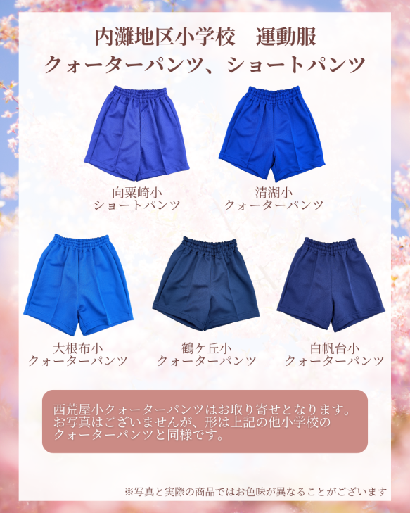 このたび、河北郡内灘地区の小学校の運動服短パンの販売を開始しました。